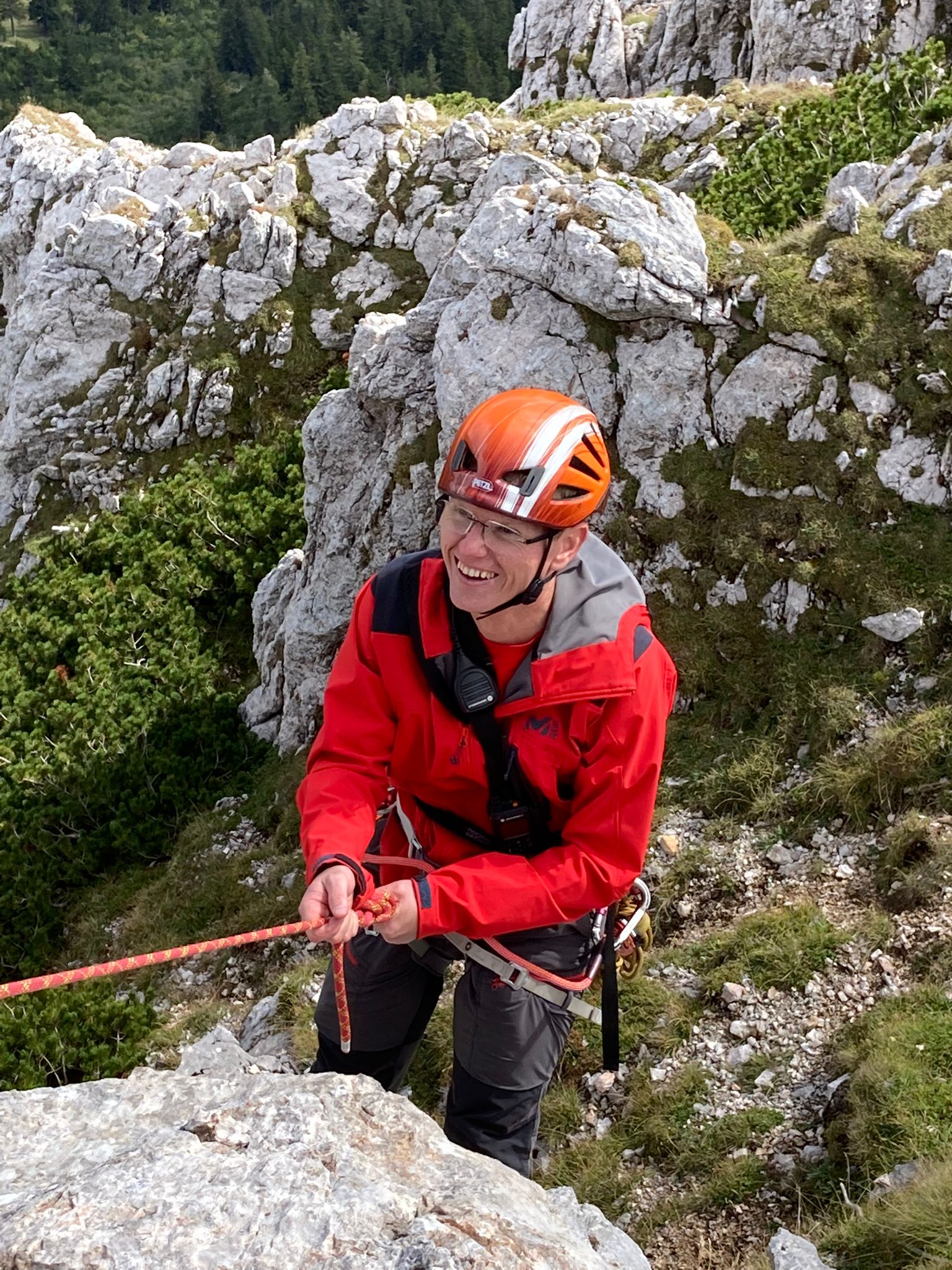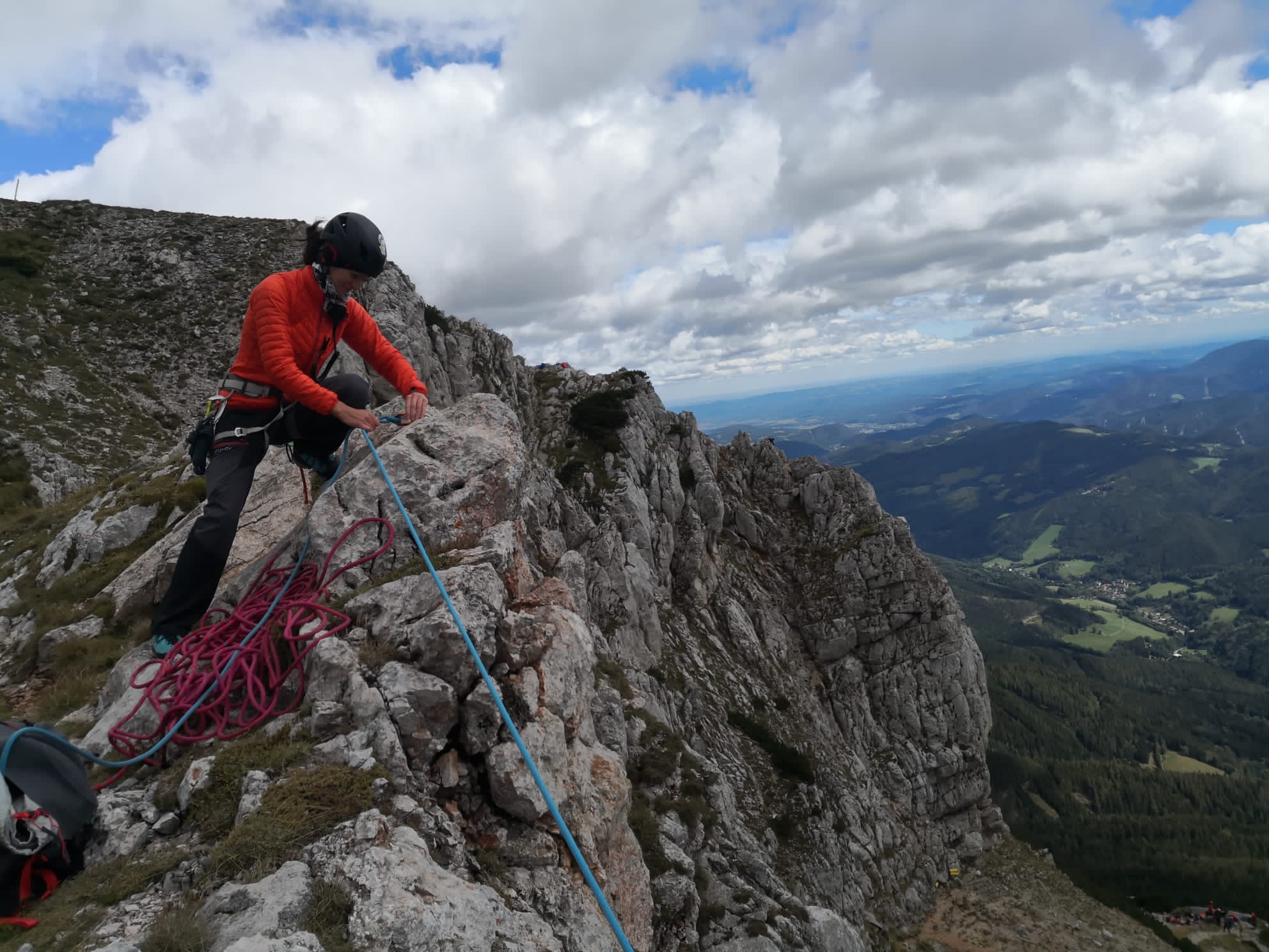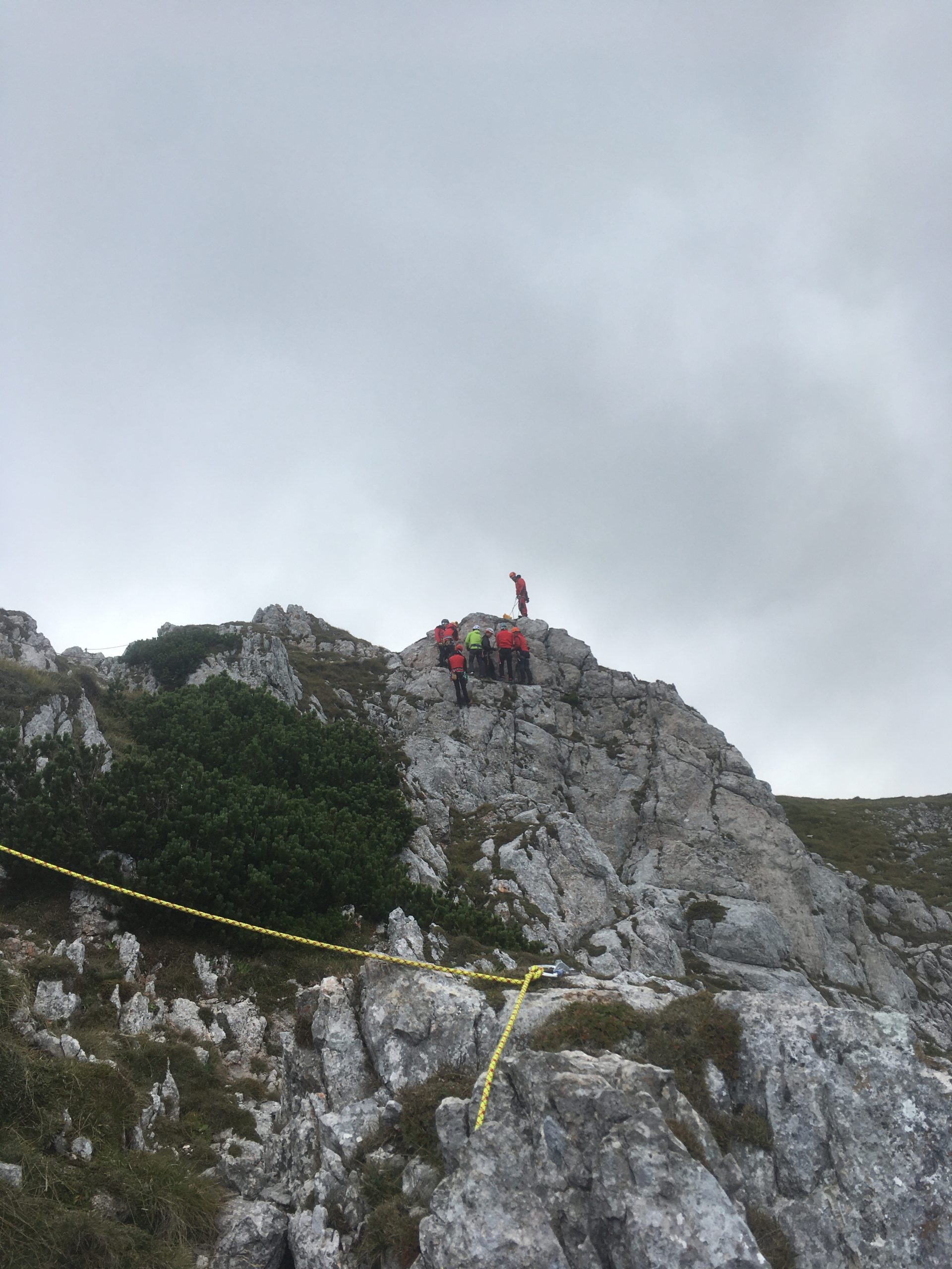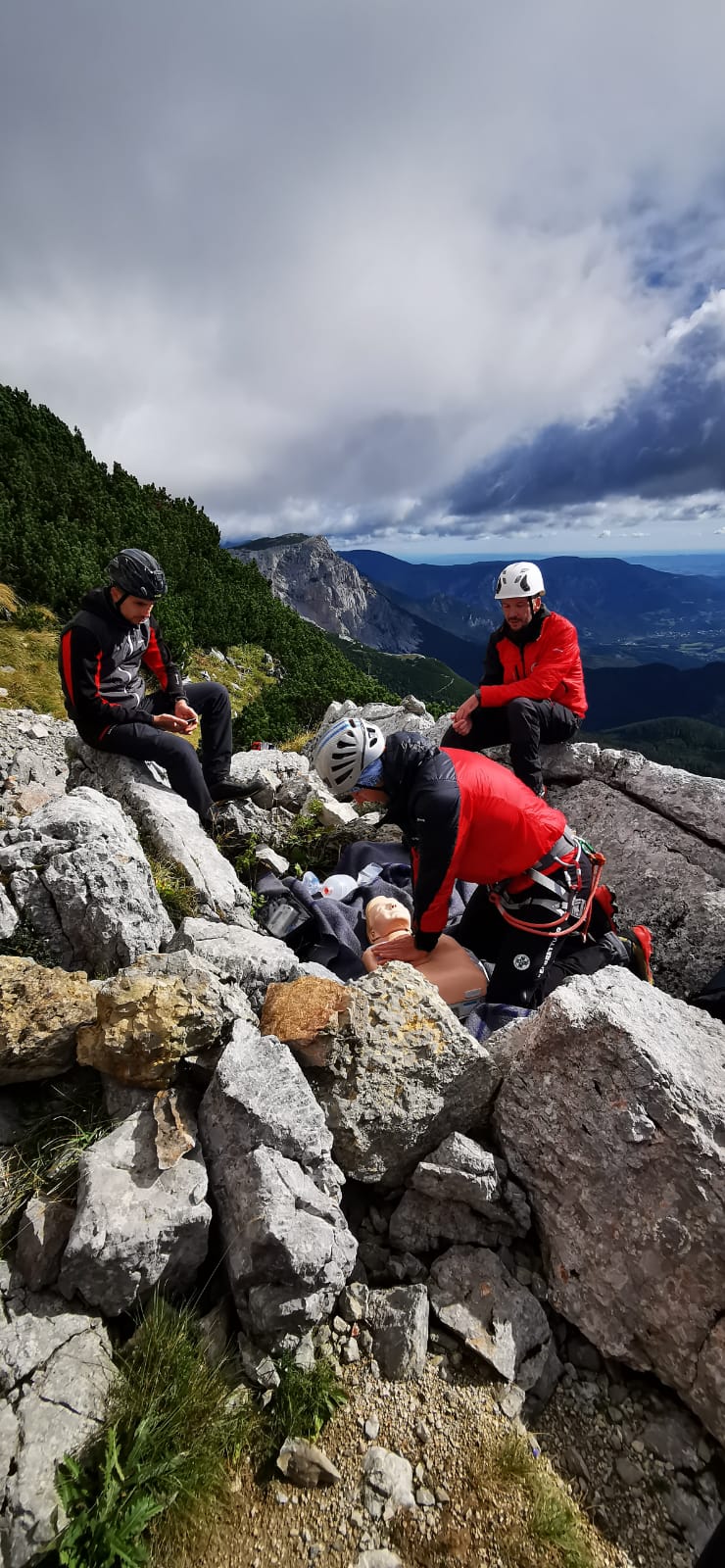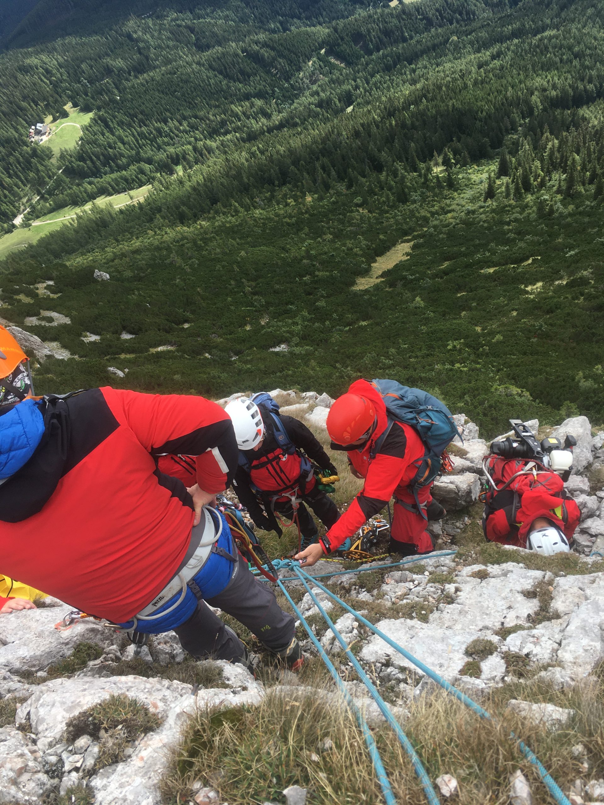 Am Samstag fand auf der Rax im Bereich des Karl-Ludwig-Hauses eine groß angelegte Gebietsübung der Bergrettungs-Ortsstellen Mürzzuschlag, Neuberg, Kindberg und Veitsch statt. 50 Kameradinnen und Kameraden übten bei herbstlichen Wetterbedingungen im Stationenbetrieb im alpinen Gelände. Neben Auffrischung altbekannter Erste-Hilfe & Bergemethoden, wurden auch neue Produkte vorgestellt und beübt. Neben dem aus der Industriekletterei stammenden „Petzl Maestro“, was einfache Bergungen nach unten und oben ermöglicht, wurde auch das neue Dyneema-System mit Kernmantel vorgestellt. Der Vorteil dieser neuen, leichten Seile, liegt in der Möglichkeit der erweiterten Anwendung mittels Motorwinde. Zudem können die Ultraleichtseile nun verknotet werden und haben noch höhere Sicherheitswerte bei Hitze und Abrieb.
